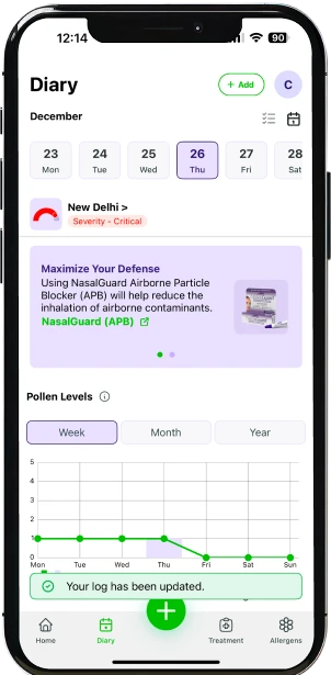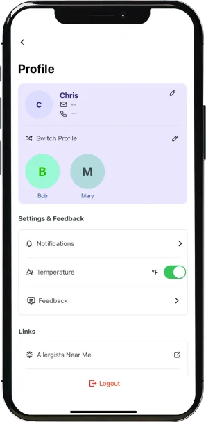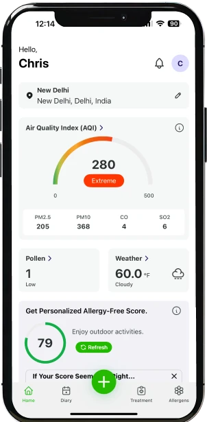 Descubra o exclusivo Índice de Controle de Alergias do AllerAid, uma funcionalidade desenvolvida para refletir sua condição de saúde com base nos seus sintomas diários e no ambiente ao seu redor.